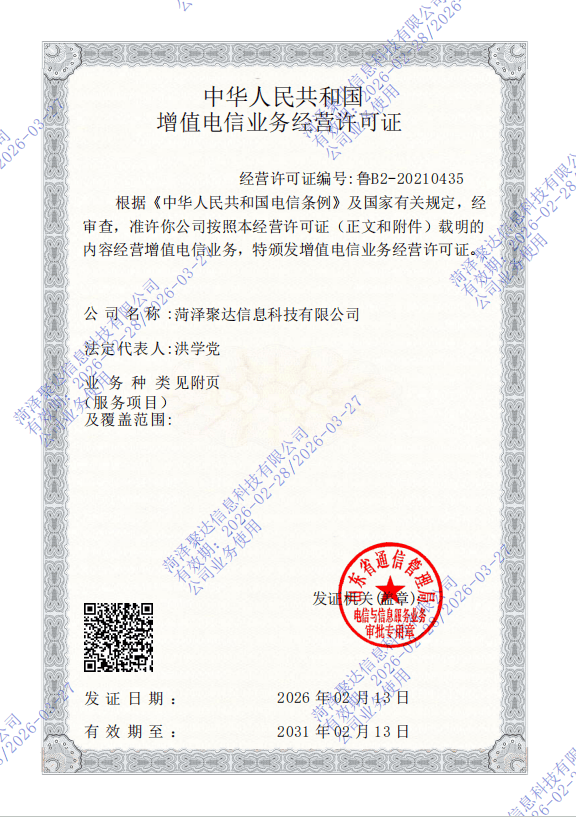 公司名称:菏泽聚达信息科技有限公司 公司地址:山东省菏泽市开发区鑫凯国际21号楼323室